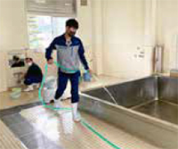 365日ローテーションを組んで工場浴槽の掃除を主な仕事としています。