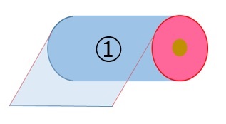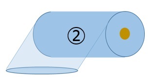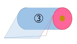 円形(チューブ状)に樹脂を成形し両サイドをスリットし、2枚をそのまま巻き取った形状です。フィルムを引き出すと2枚が同時に引き出されます。
